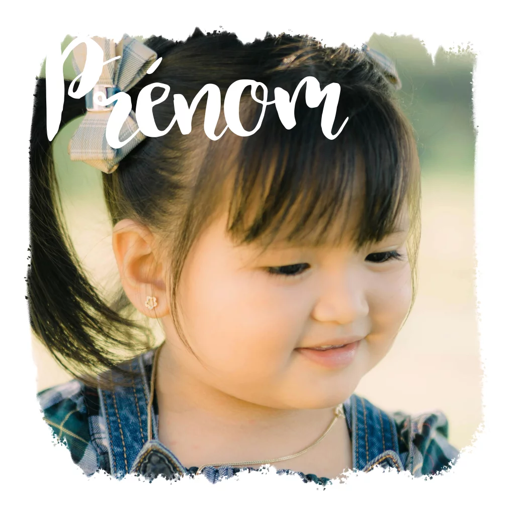 Faire-part de baptême avec belle photo dans un cadre aquarelle blanc