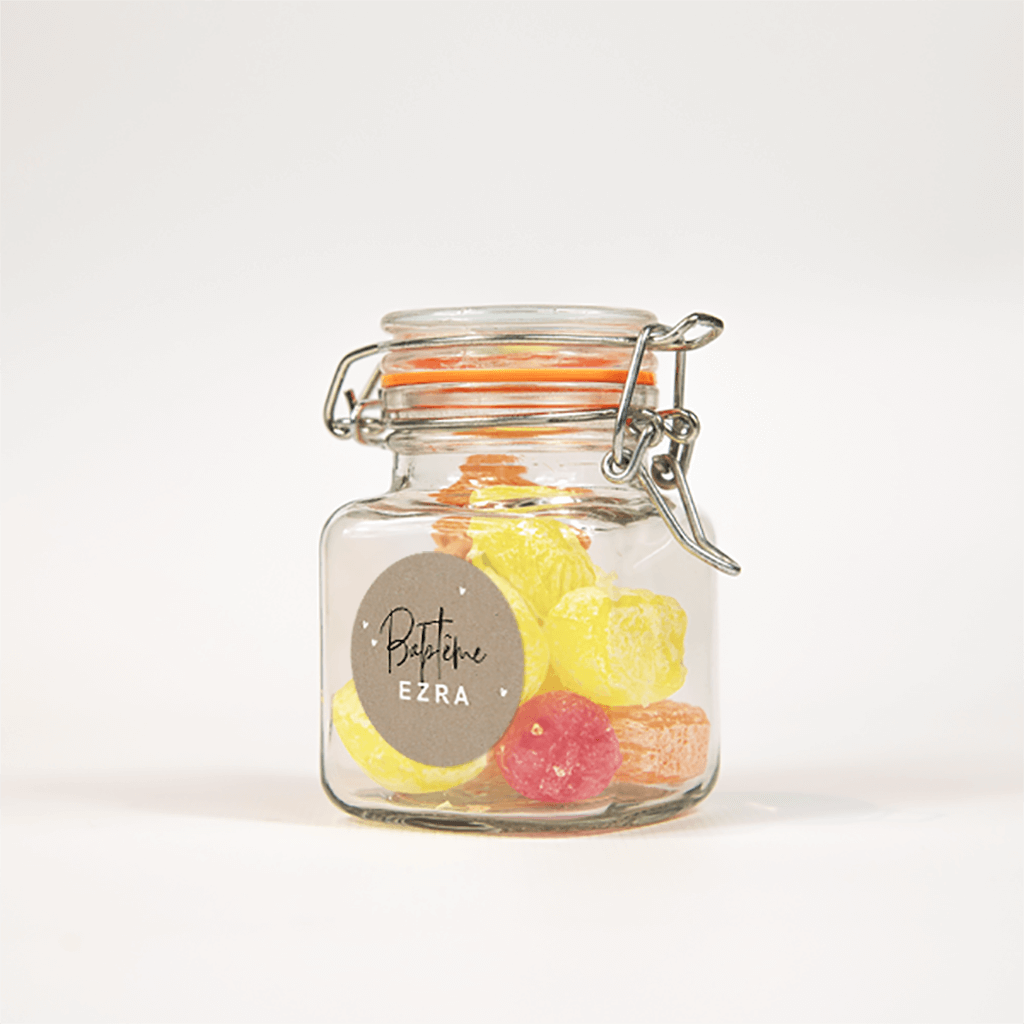 Sticker remerciement baptême avec coeur sur aspect kraft - 25 ex.