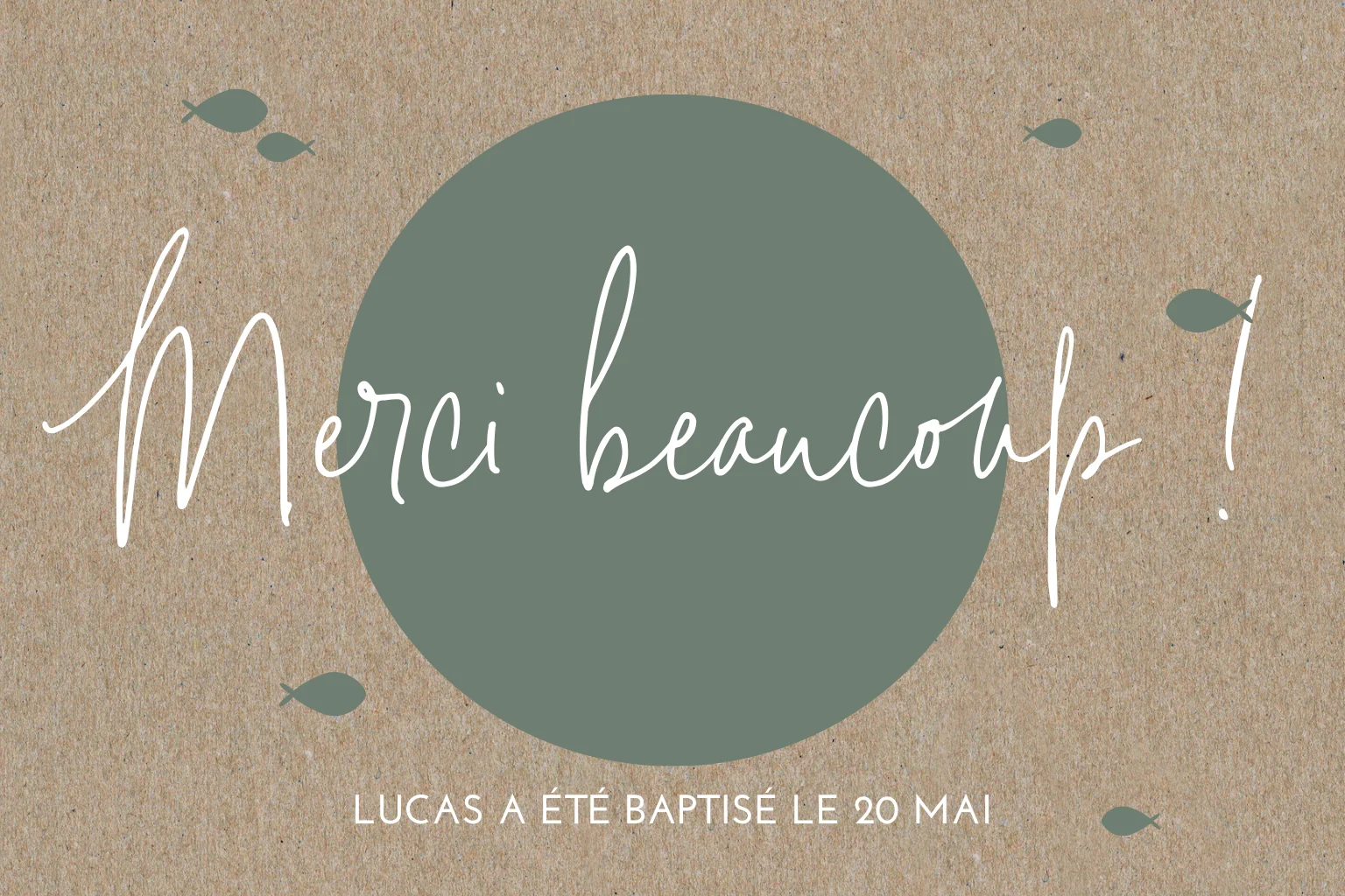Carte de remerciement pour le baptême avec photos et poissons verts