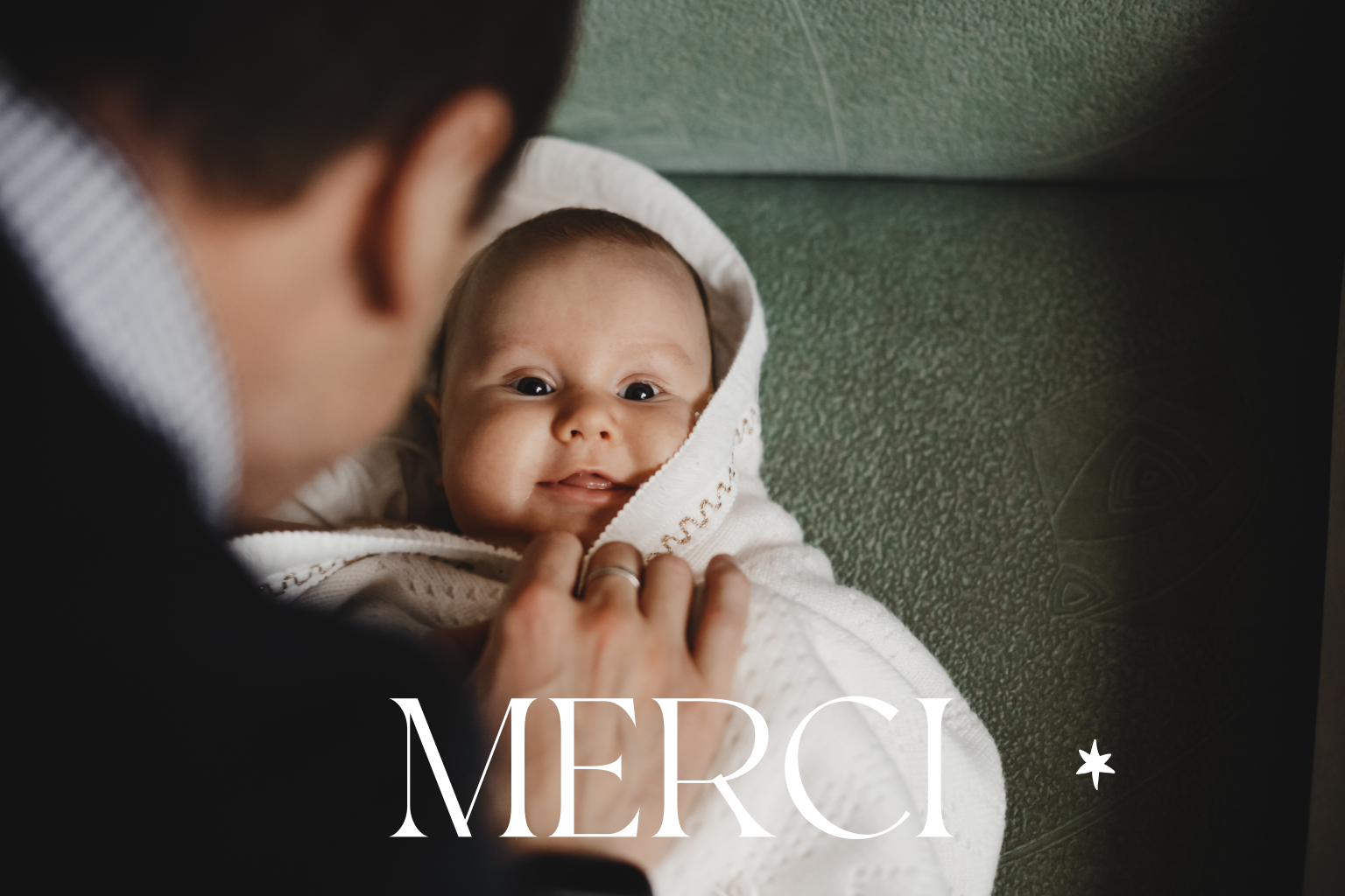 Carte de remerciement de baptême avec grande photo et étoile en dorure rosée.