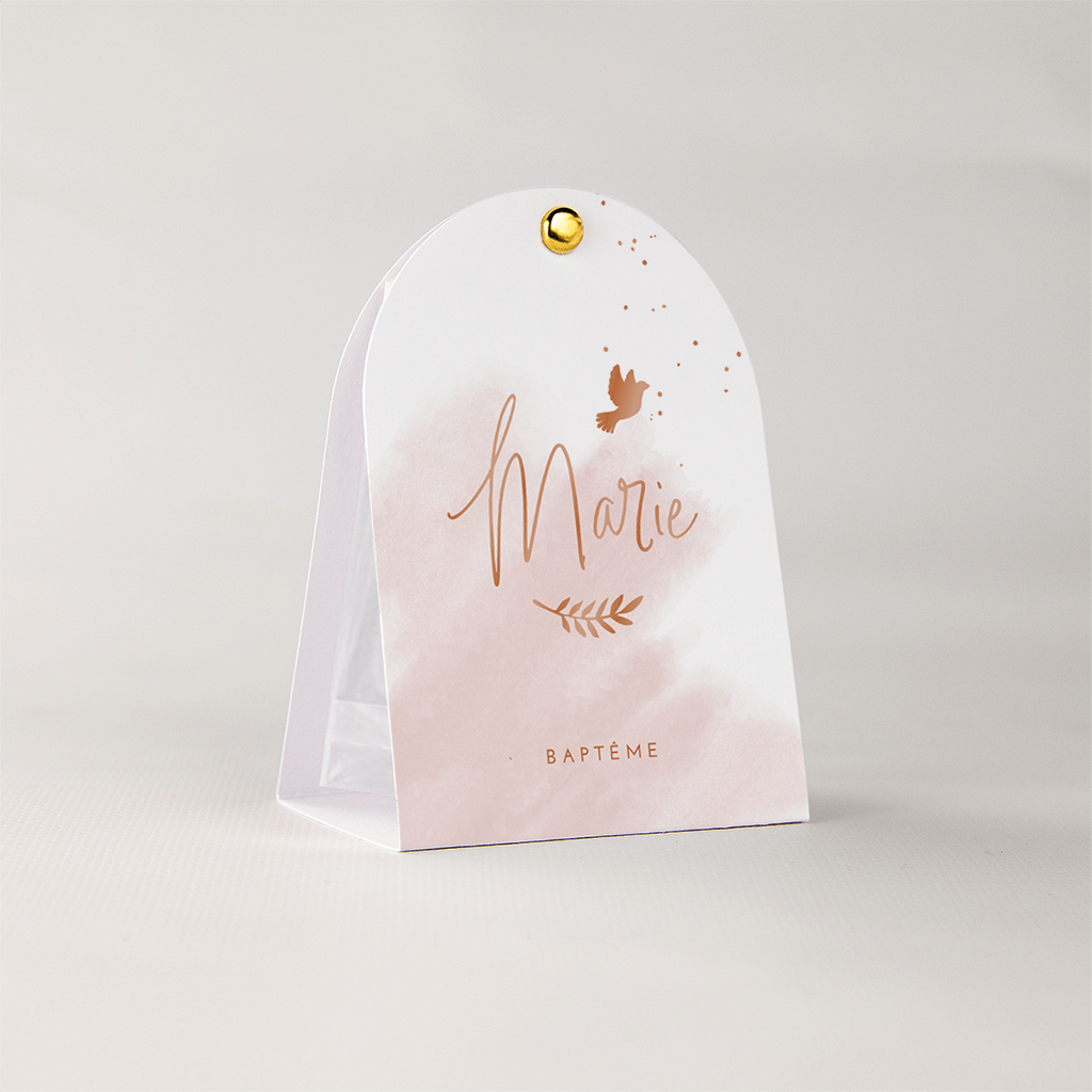 • Les deux faces peuvent être fermées à l'aide d'une attache parisienne et la boîte à dragées peut être complétée d'un sachet transparent pour les dragées.