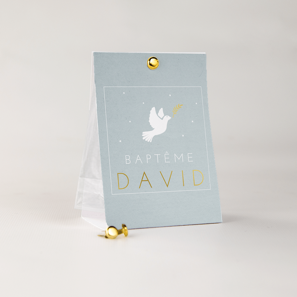 • Les deux faces peuvent être fermées à l'aide d'une attache parisienne et la boîte à dragées peut être complétée d'un sachet transparent pour les dragées.