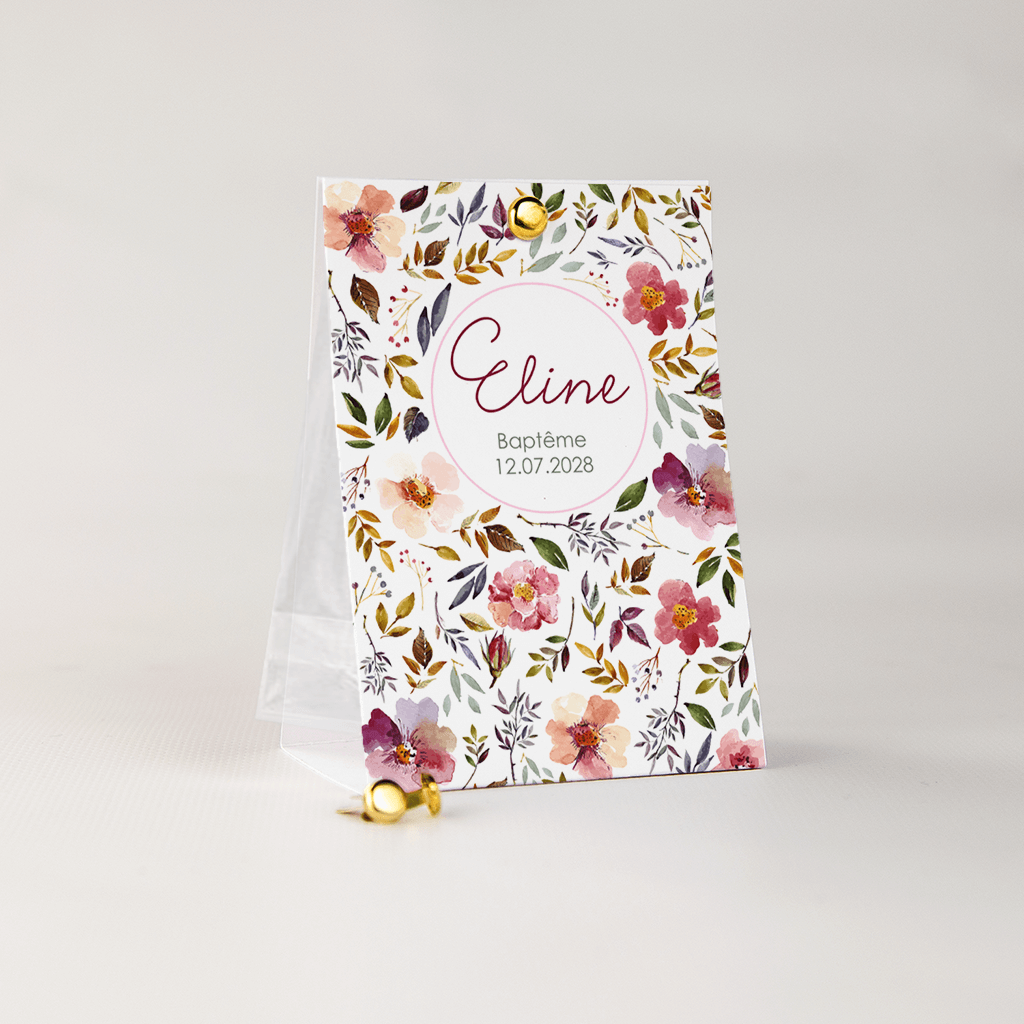 • Les deux faces peuvent être fermées à l'aide d'une attache parisienne et la boîte à dragées peut être complétée d'un sachet transparent pour les dragées.