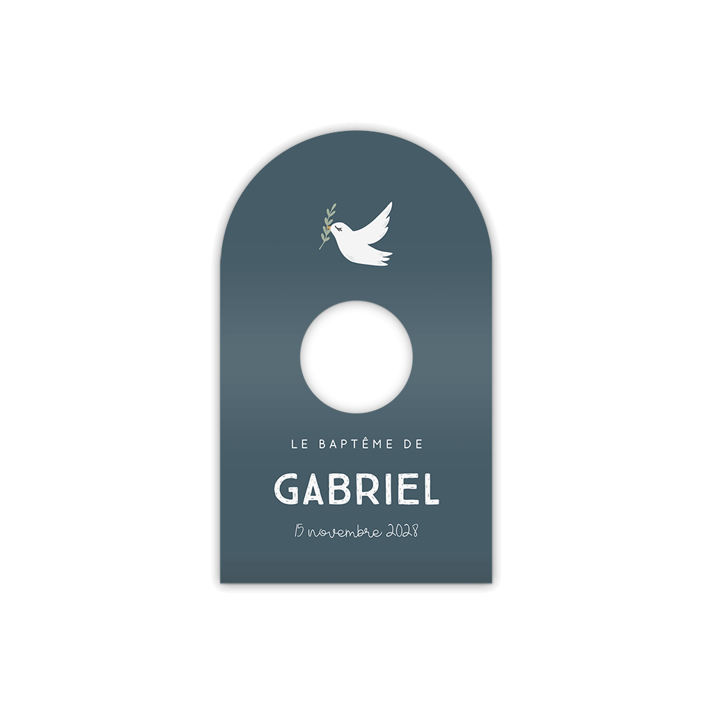 Contenant cadeaux en arche avec colombe sur fond bleu foncé