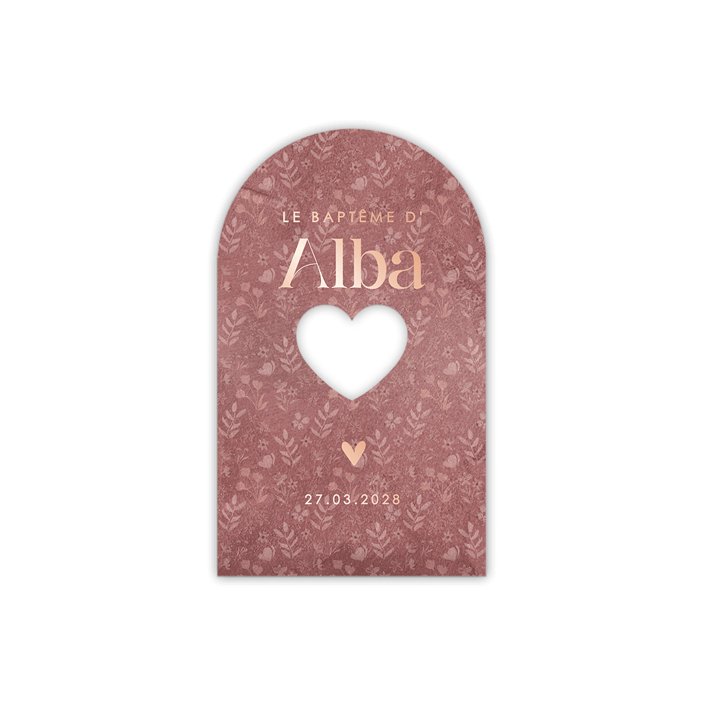 Contenant cadeaux en arche avec motif de feuillages et dorure rosée