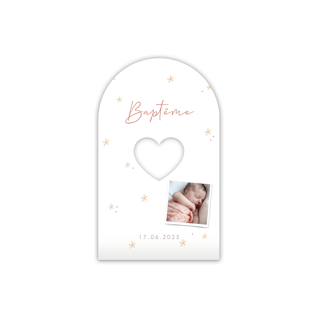 Contenant cadeaux en arche avec photo et fleurs roses