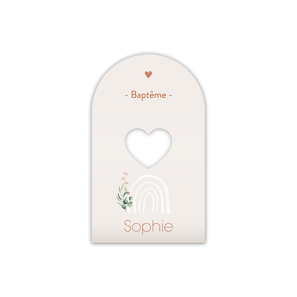 Contenant cadeaux baptême en arche avec arc-en-ciel et fleur