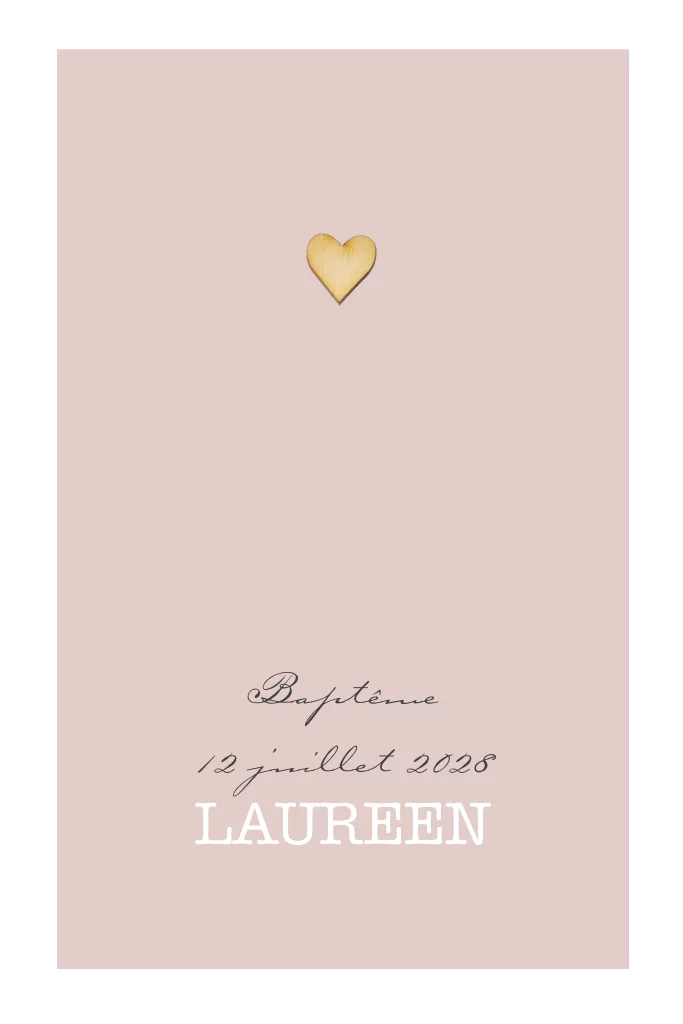 Faire-part de baptême avec fond vieux rose | élément bois en option