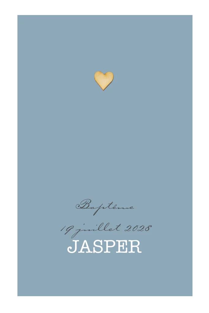 Faire-part de baptême élégant fond bleu-gris | élément bois en option