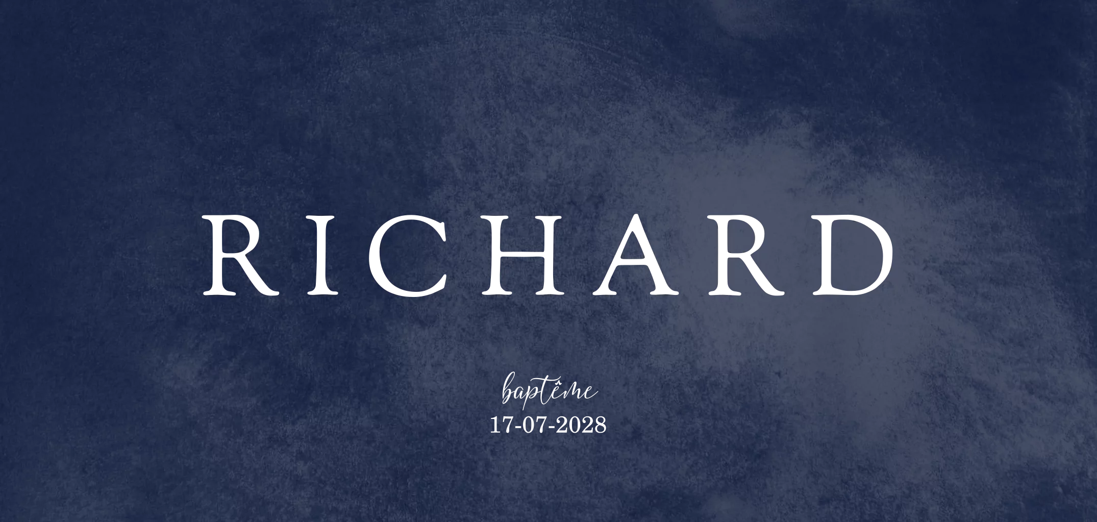 Faire-part de baptême élégant avec dorures sur fond bleu nuit