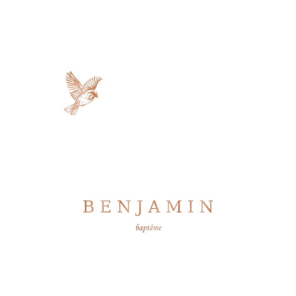 Faire-part de baptême élégant avec un oiseau et un texte vernis