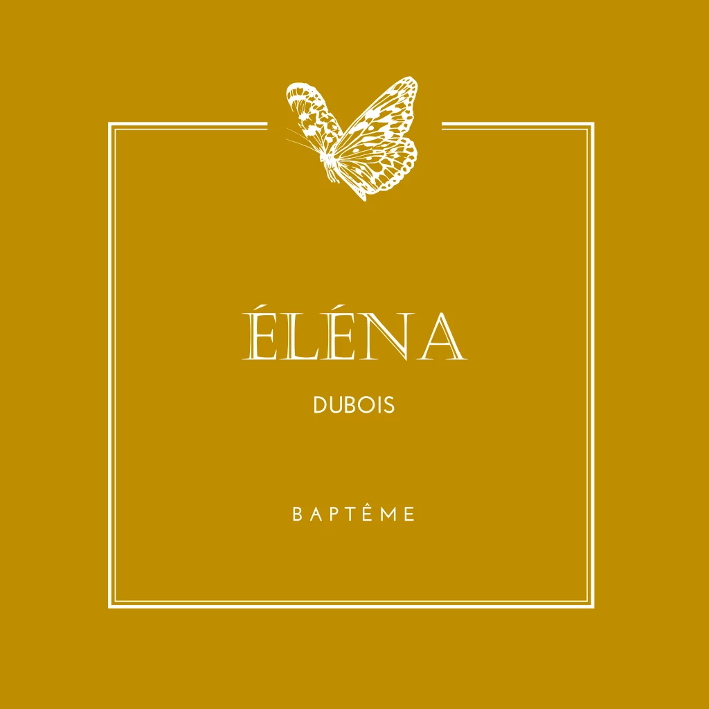 Faire-part de baptême fond ocre avec papillons