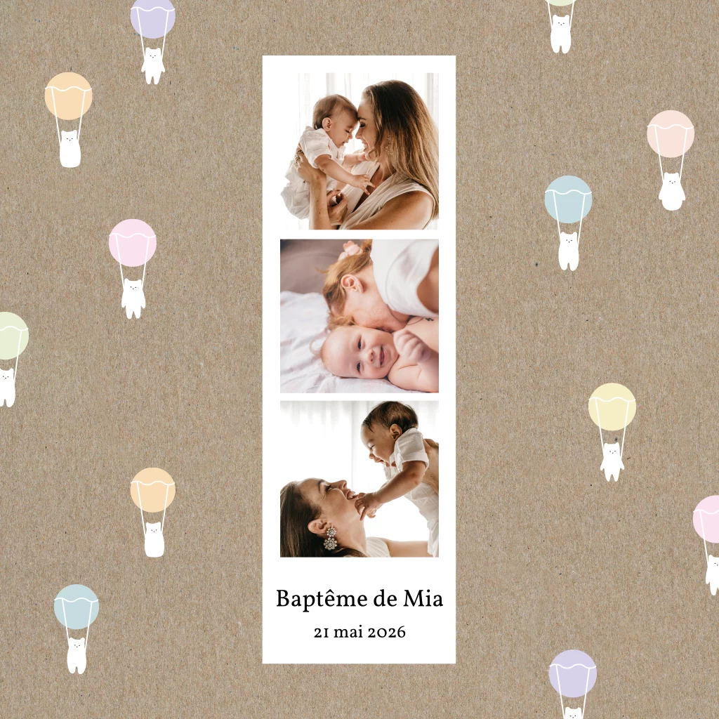 Faire-part de baptême civil avec ours et ballons sur du papier kraft