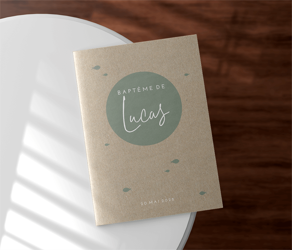 Livret de cérémonie avec photo, aspect kraft et poissons