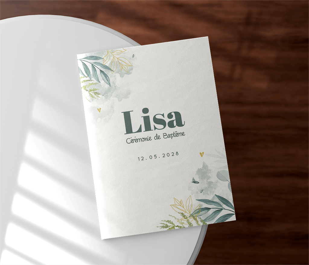 Livret de cérémonie avec photo et avec feuillages