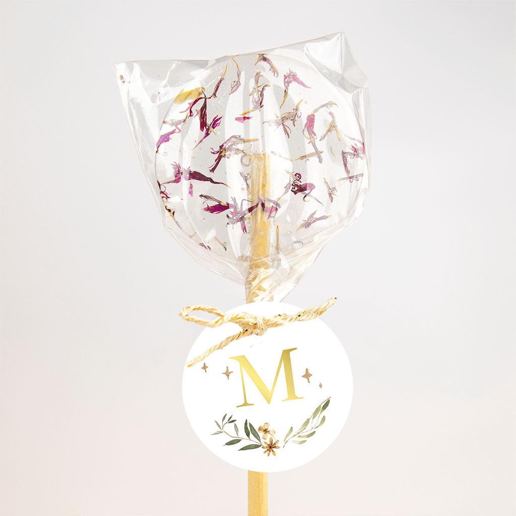 Étiquette cadeaux avec fleurs et initiale en dorure - 16 ex.
