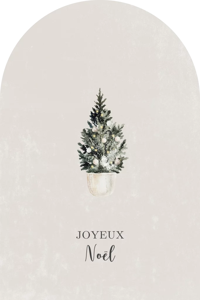 Carte de Noël découpée avec petit sapin de Noël sur fond gris clair.