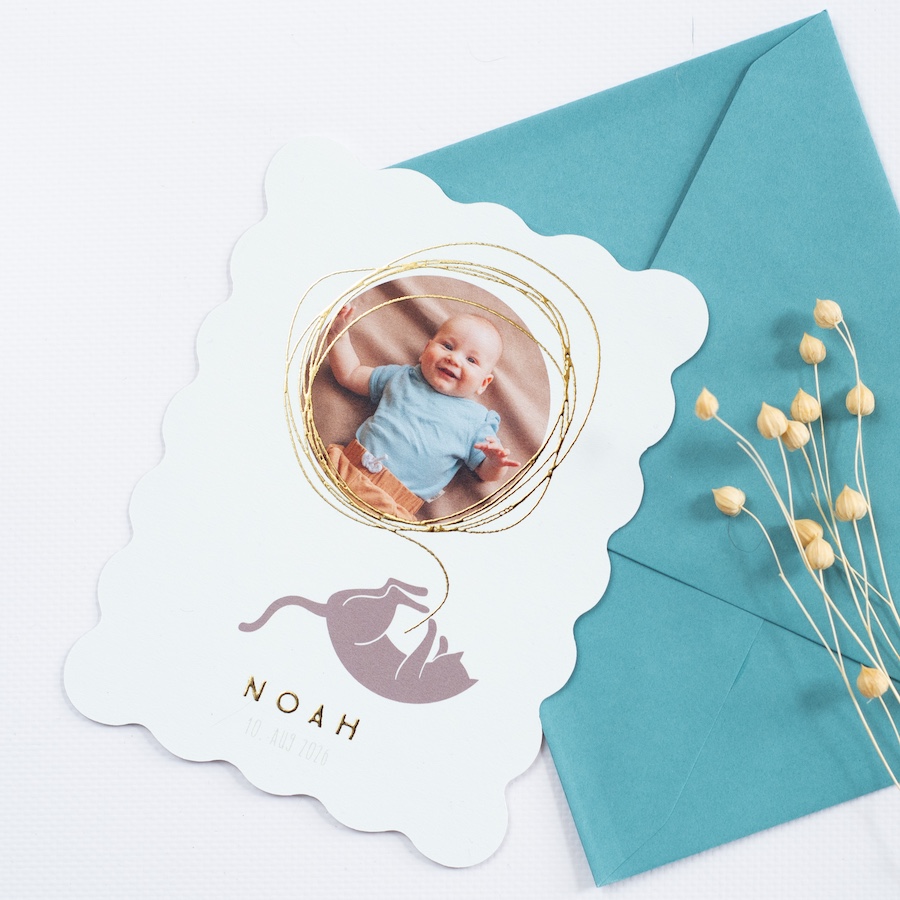 Faire-part de naissance en forme de nuage avec une photo et un chat
