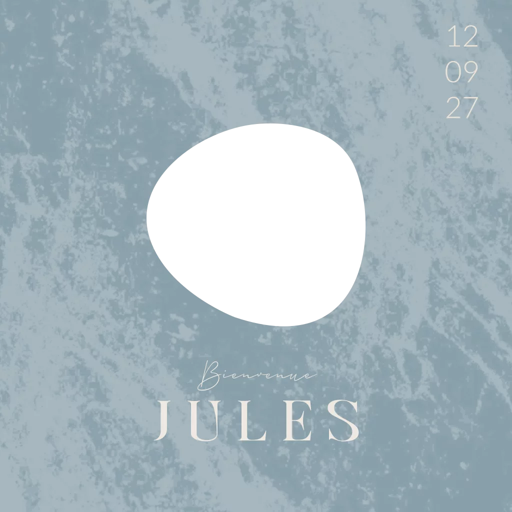 Faire-part de naissance avec fenêtre pour photo et fond bleu