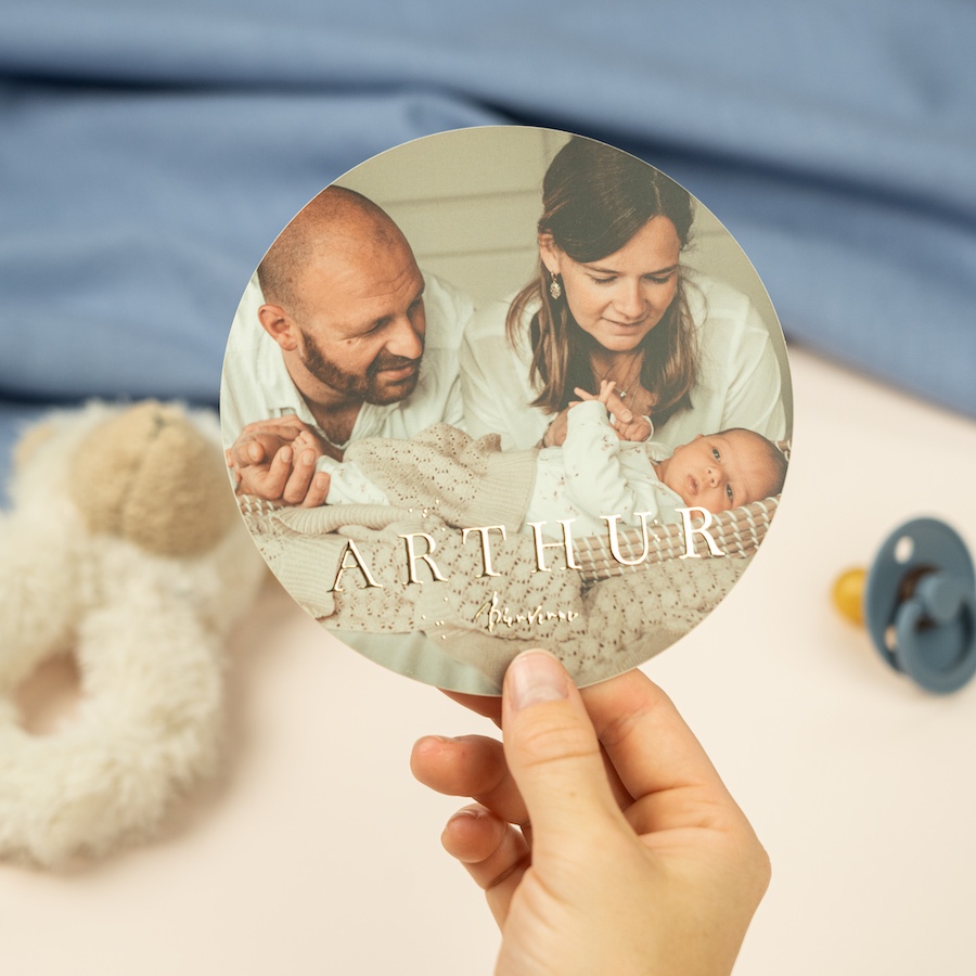 Faire-part de naissance de forme ronde avec photo