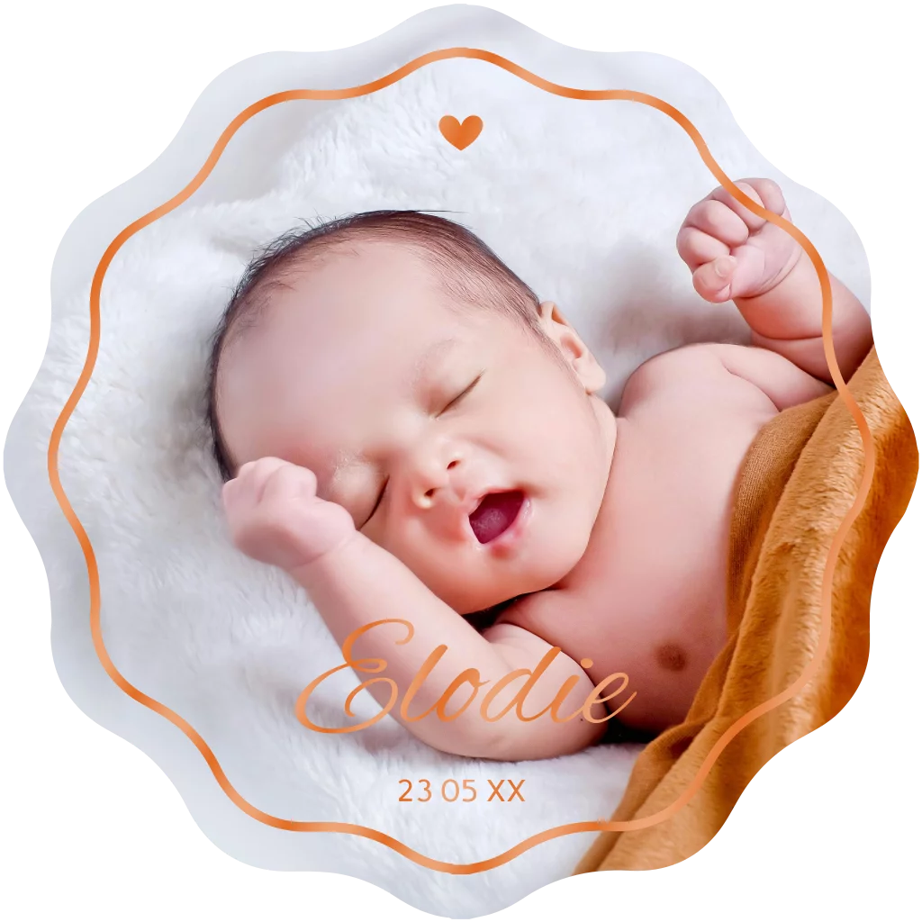 Faire-part de naissance en forme ondulée avec photo de bébé et vernis