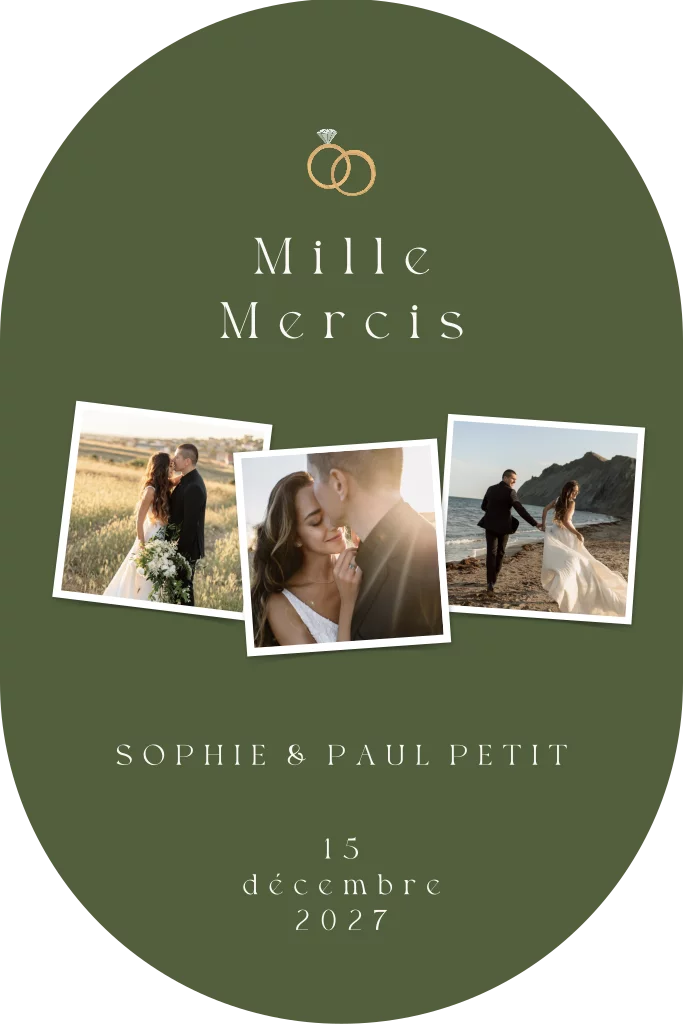 Carte de remerciement mariage en ovale avec feuilles d'olivier