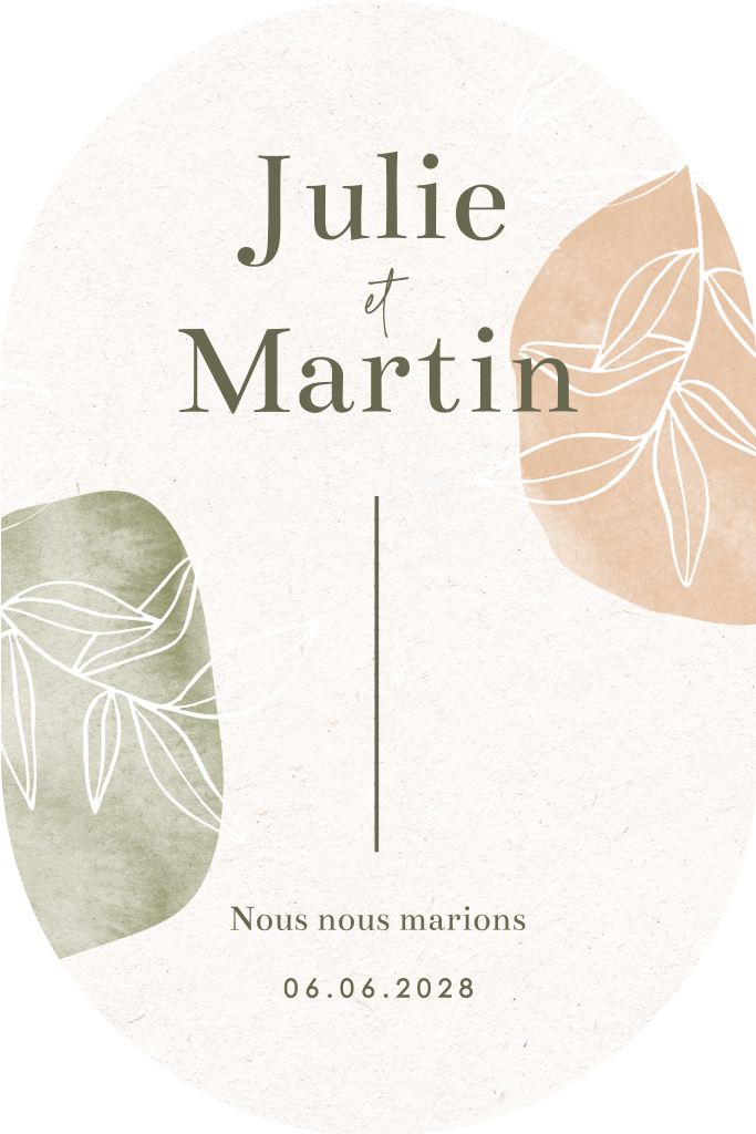 Faire-part forme ovale avec des branches et de l'aquarelle