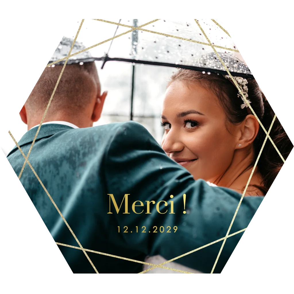Carte de remerciement en forme géométrique avec feuille d'or et photo