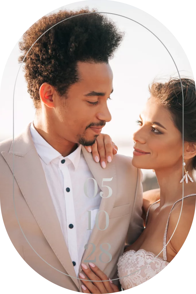 Carte de remerciement en forme ovale en feuille d'argent avec des fleurs et une écriture décorative.