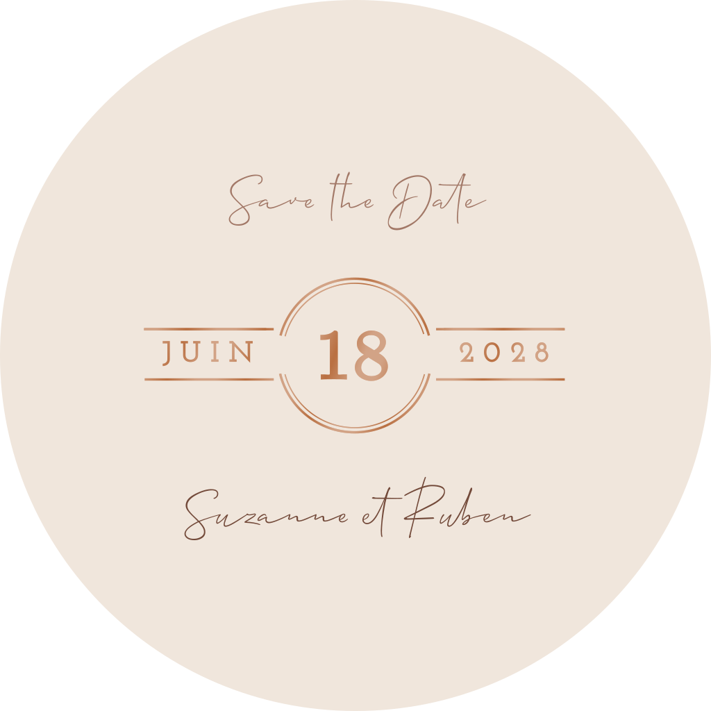 Save the date ronde avec date du mariage en vernis