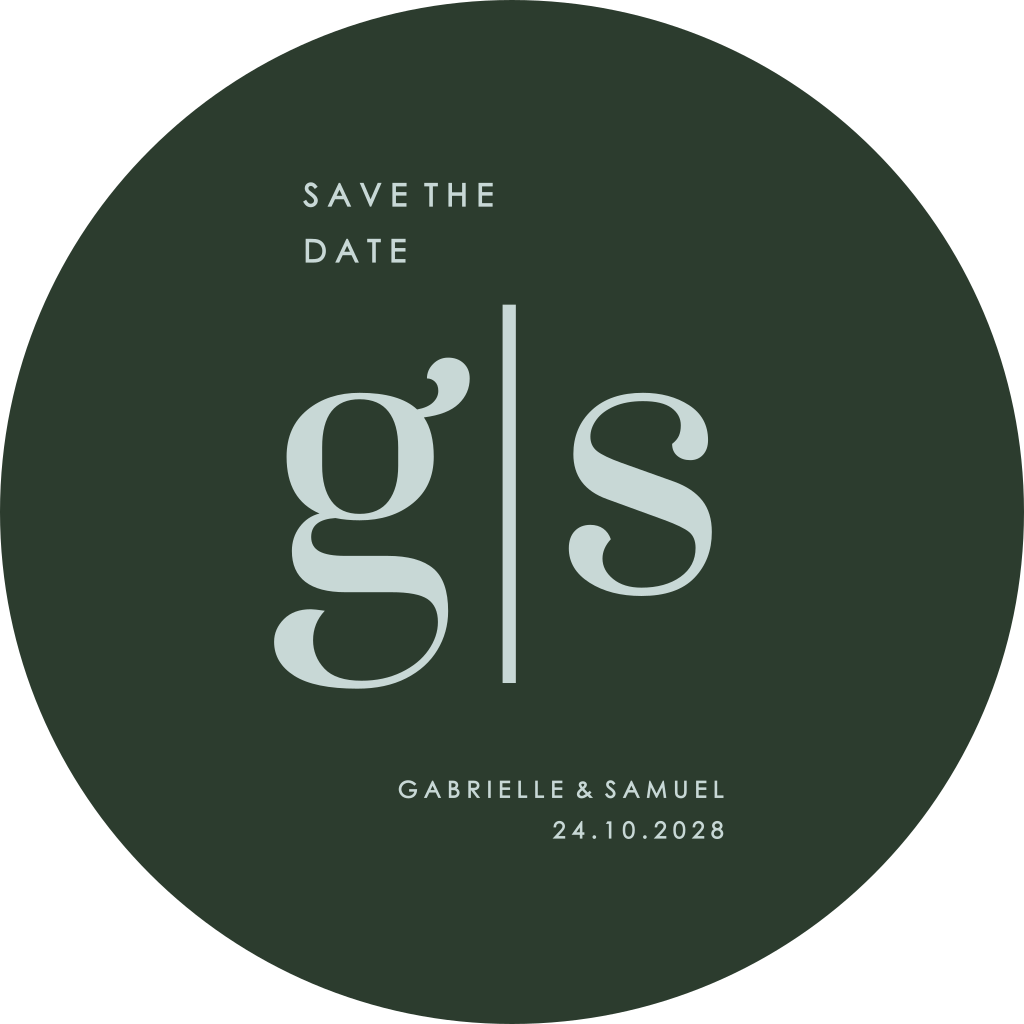 Save the date ronde avec les initiales des mariés