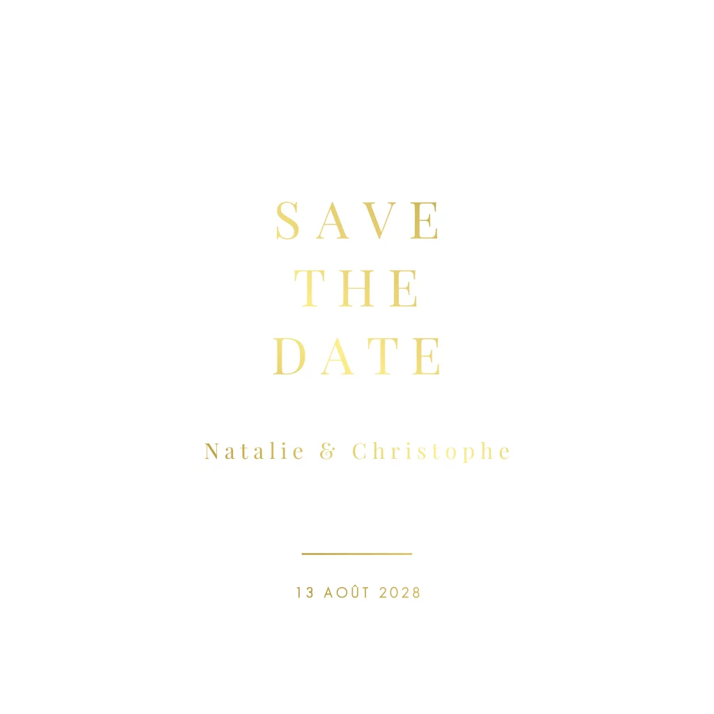 Save the date en forme hexagonale avec des lettres dorées. Consultez toute la papeterie assortie.