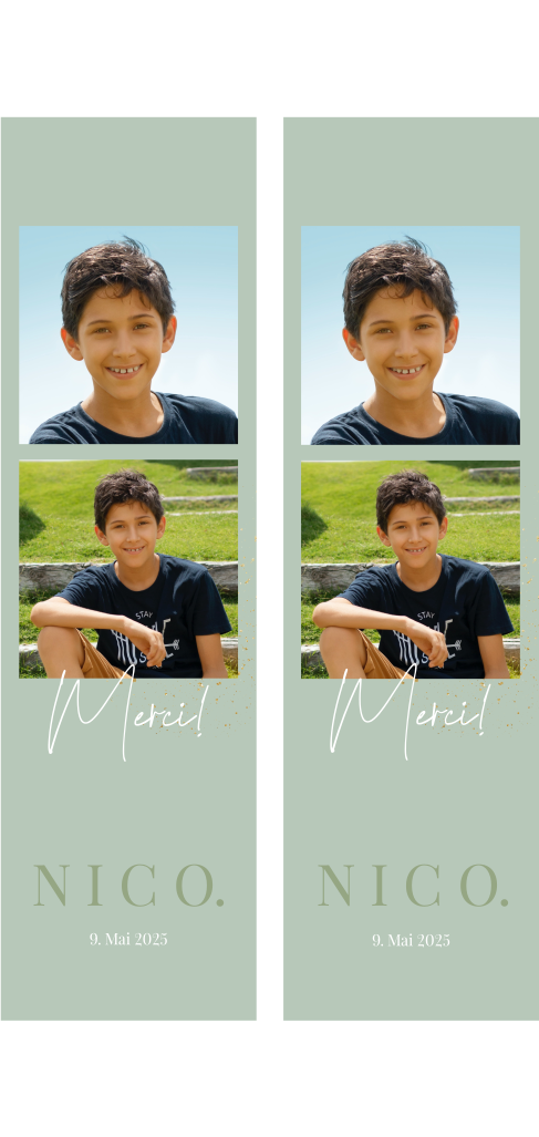 Carte de remerciement pour la confirmation avec bande de photos et vert