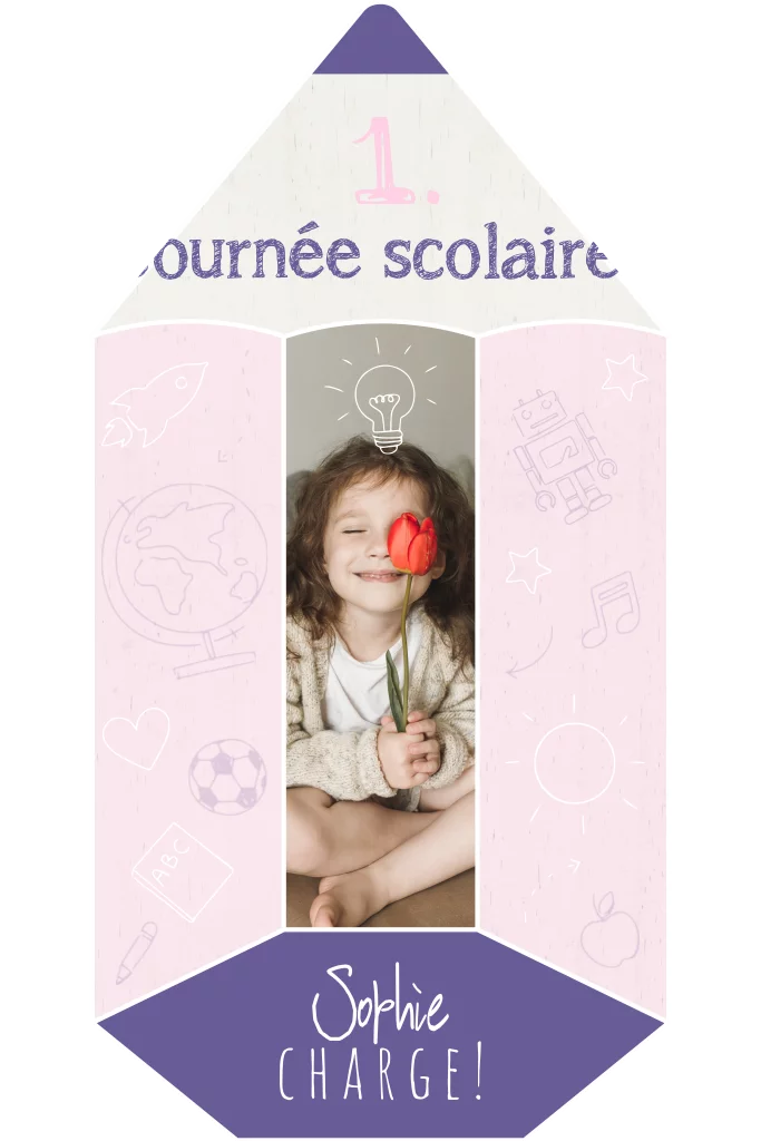 La carte d'invitation pour la rentrée scolaire est un véritable accroche-regard ! Conçue sous la forme d'un crayon, elle apporte immédiatement une atmosphère ludique et scolaire. La carte a été réalisée avec amour dans une teinte de bleu attrayante, qui transmet une ambiance fraîche et joyeuse. À l'avant de la carte se trouve une photo du nouvel élève, qui est au centre de l'attention. Le petit élève rayonne de joie et de fierté, entouré de petites images clipart qui évoquent le thème de l'école et de la rentrée. Le verso de la carte est consacré au texte d'invitation. Vous pouvez y noter toutes les informations importantes sur la cérémonie de rentrée, telles que la date, l'heure, le lieu et d'autres détails. Le texte est imprimé dans une police de caractères facile à lire, ce qui permet à tous les destinataires de comprendre les informations sans problème. La carte en forme de crayon pour la rentrée scolaire est une façon unique et originale d'inviter amis et famille à la cérémonie de rentrée. Elle dégage de la joie, de l'excitation et la fierté du nouvel élève, et sera