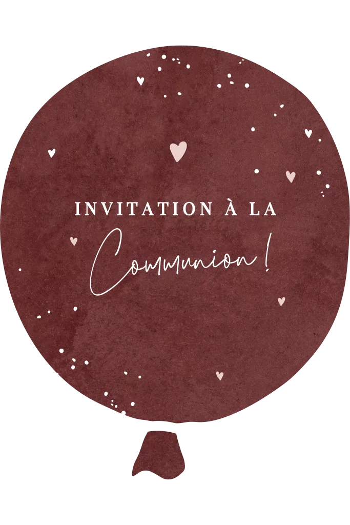 Faire-part de communion sous forme de ballon rouge avec petits cœurs