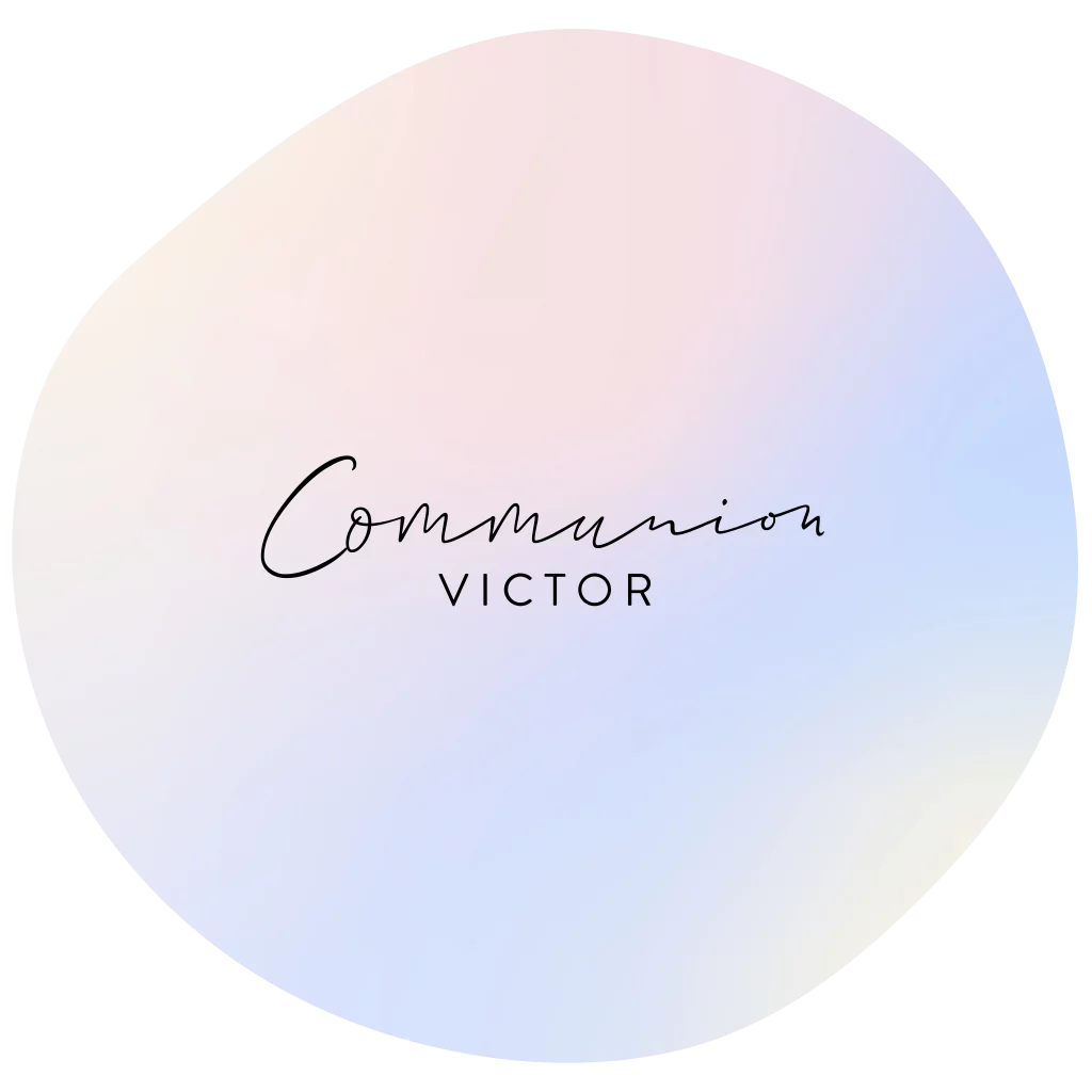 Faire-part communion forme originale avec fond en holographie.
