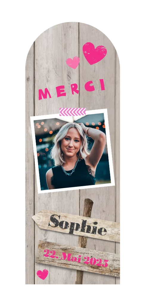 Carte de remerciement pour la confirmation de la jeunesse avec photo et poteau de plage en bois.