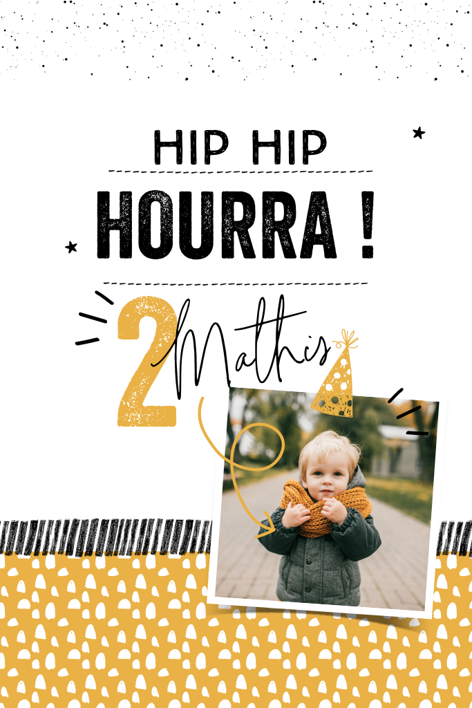 Carte d'invitation jaune et noire pour l'anniversaire d'un enfant.