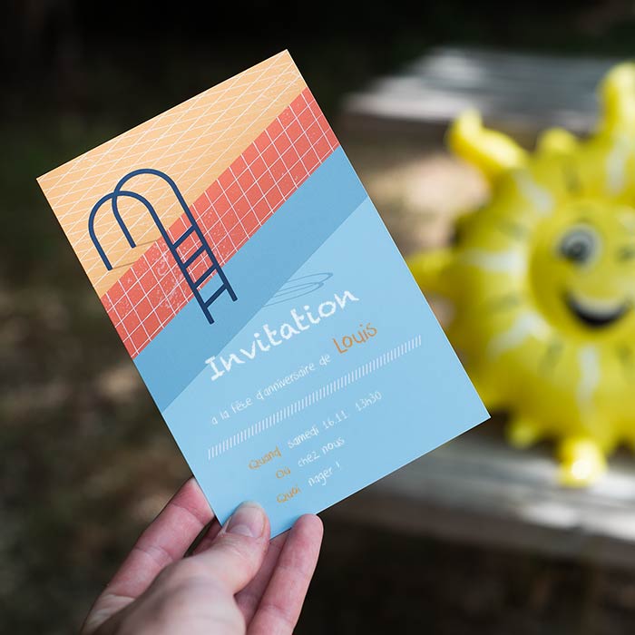 Carte d'invitation d'anniversaire avec une piscine.