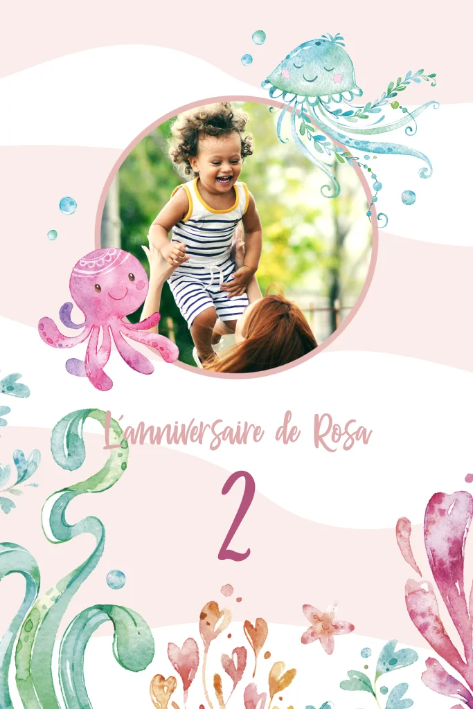 Carte d'invitation douce sur le thème des sous-marins avec une photo.