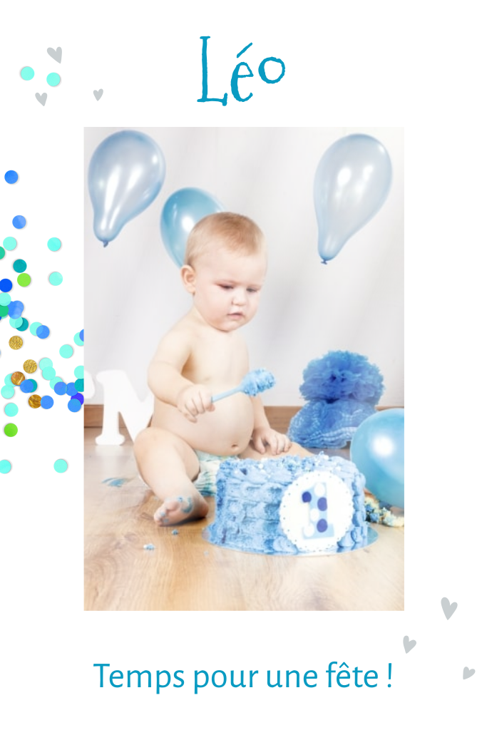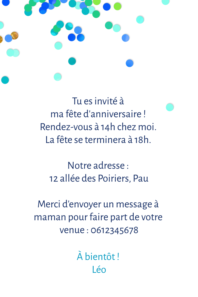 Carte d'invitation pour un anniversaire d'enfant avec des confettis.
