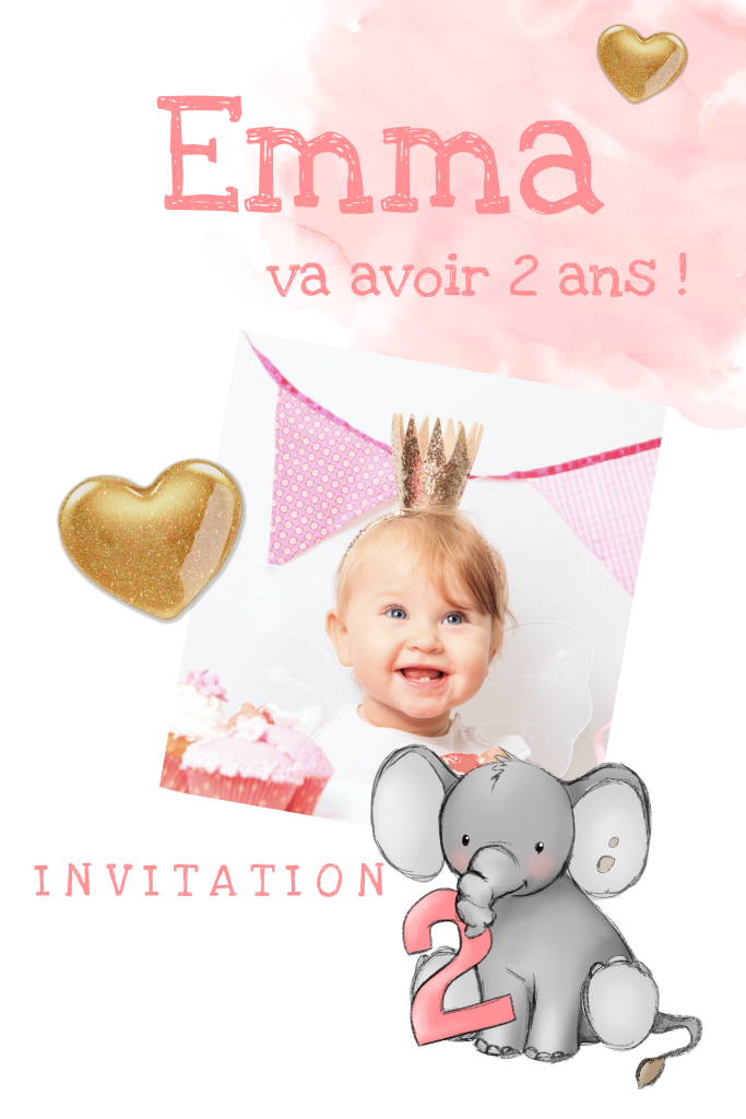 Carte d'invitation douce et rose pour l'anniversaire d'un enfant.