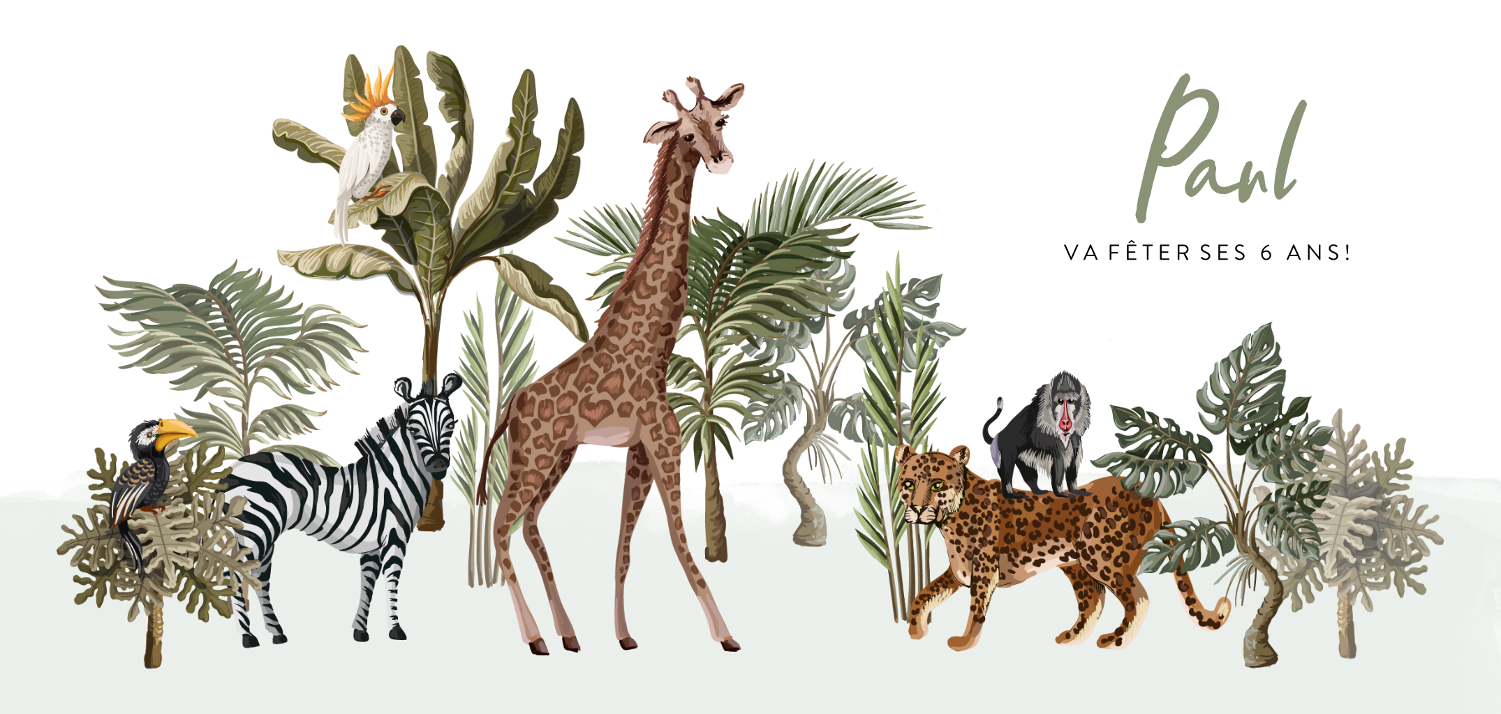 Invitation d'anniversaire pour enfants avec animaux de la jungle.