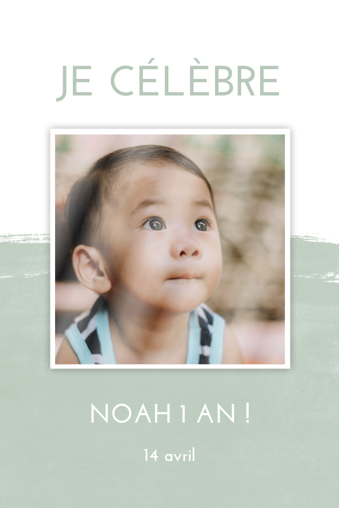 Carte d'invitation d'anniversaire avec une photo sur fond vert.