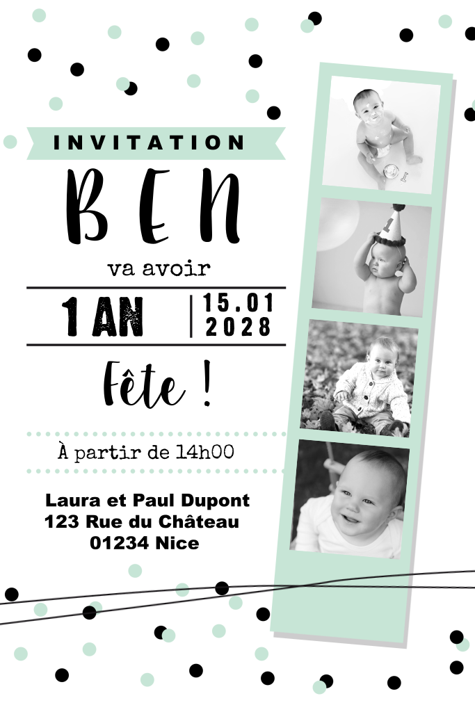 Carte d'invitation d'anniversaire pour les enfants avec des confettis.