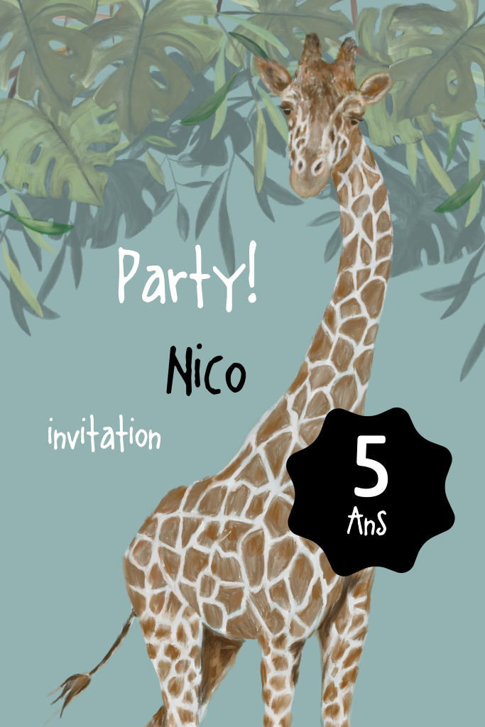 Carte d'invitation d'anniversaire pour enfants avec girafe