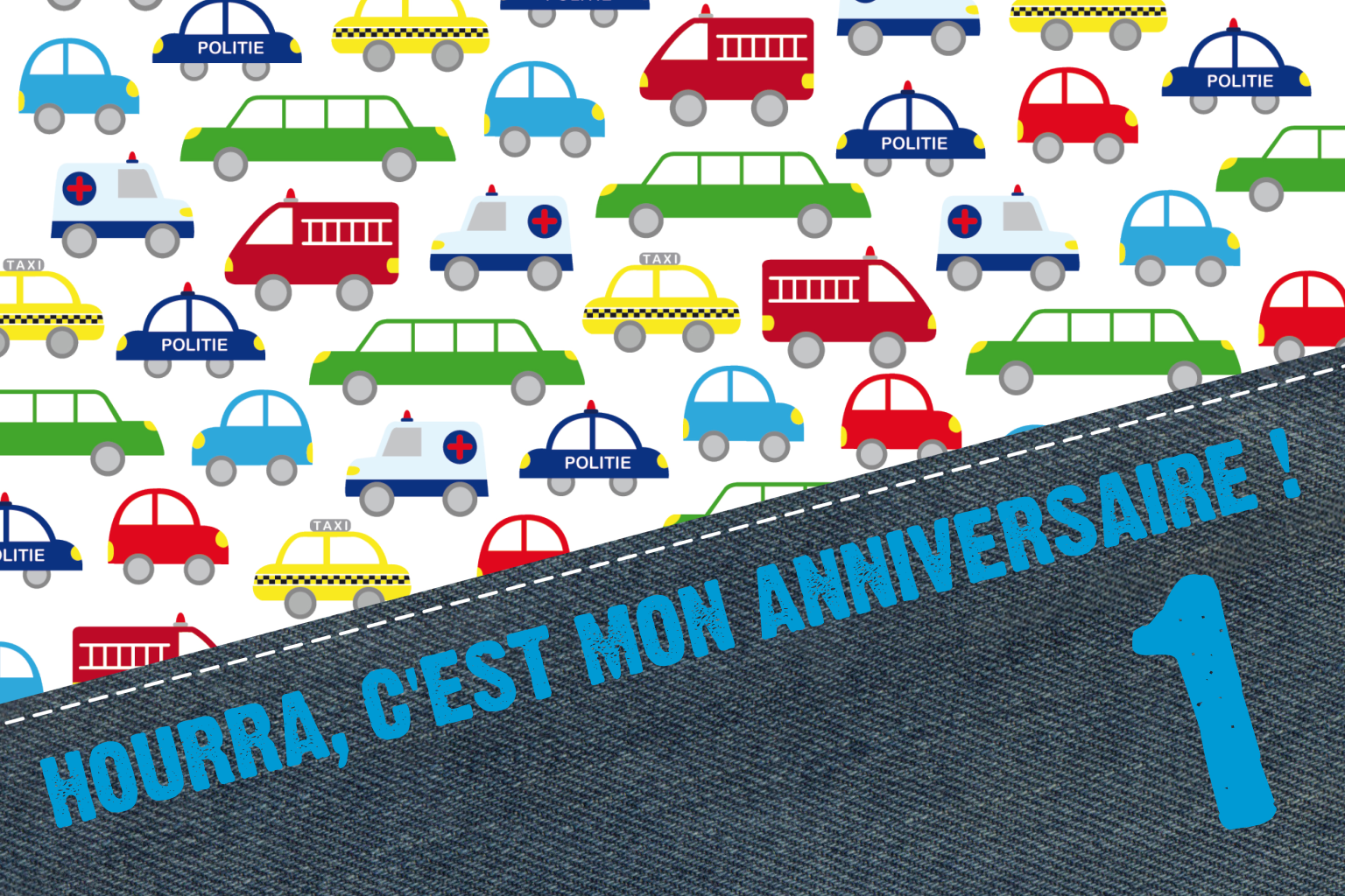 Carte d'invitation pour le 1er anniversaire avec des voitures.