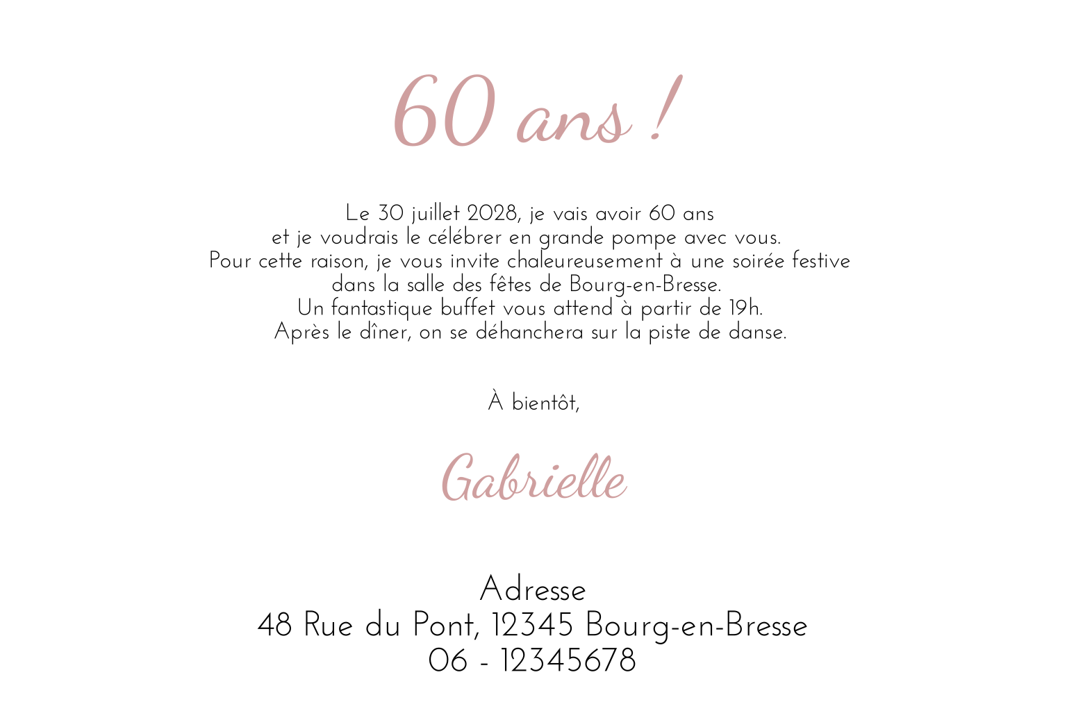 Carte d'invitation pour les 60 ans avec des ballons et une photo.