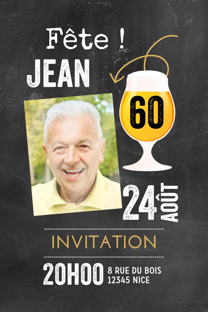 Carte d'invitation moderne pour les 60 ans sur fond de tableau noir