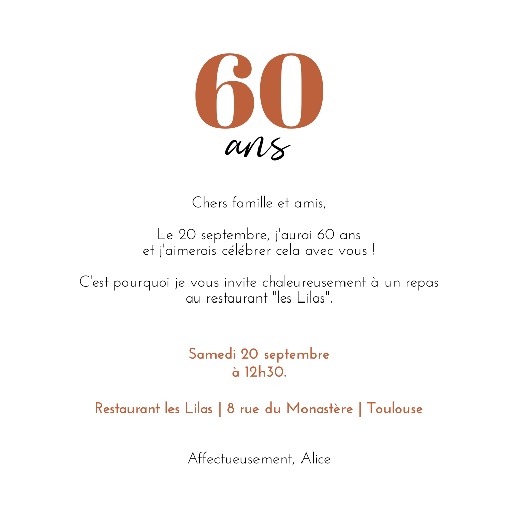 Invitation pour les 60 ans dans des couleurs pastel